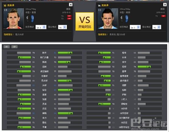 游戏里的克洛泽10赛季和14赛季简直没法比较,如果喜欢克洛泽的还是选择10卡吧,体力也好,是巅峰的克洛泽,隐藏属性有强力头球,可以打ST74点,CF73点,头球好,弹跳82点,速度和灵活性一般,如果强化成银卡可以一战