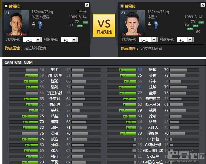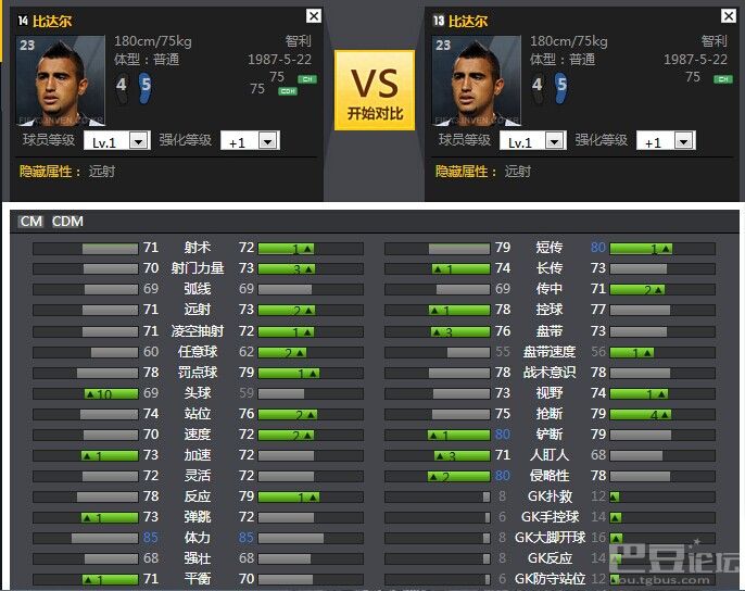 14卡的比达尔出现某些数据小跌现象,但总体也没跌倒,什么后场万金油的他,防守数据小涨,在后防主力出现伤停情况,可以客串一下,控球和盘带的增加,使他更加适合CM。